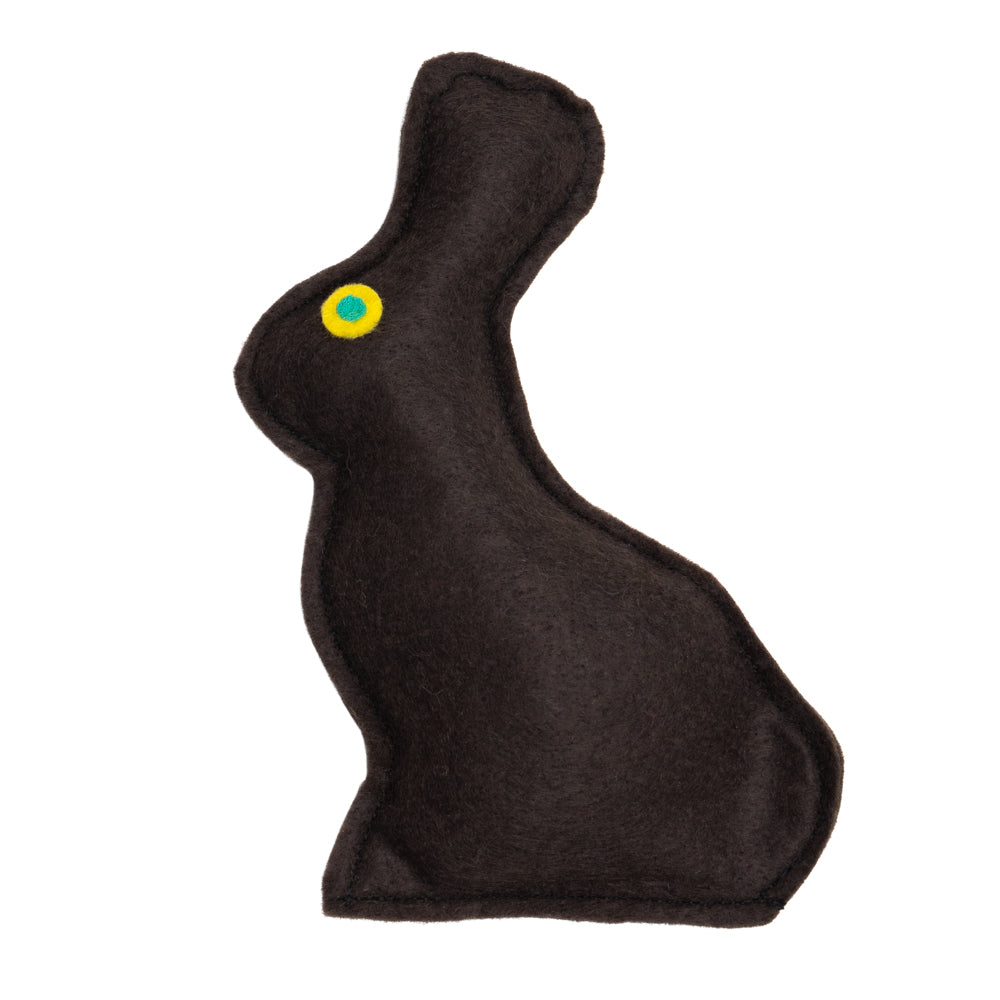 This beautiful, hand made 'chocolate' bunny catnip toy is giving us instant nostalgia of easter morning. Complete with the sweet yellow and green 'candy' eye detail, will you chomp the ears or bum first?