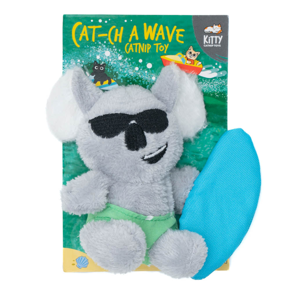 The Cat-ch a Wave Catnip Toy is a unique way to engage your cat! Made with a soft koala plush and infused with irresistible catnip, this toy will have your feline friend enjoying waves of fun - without even getting wet!