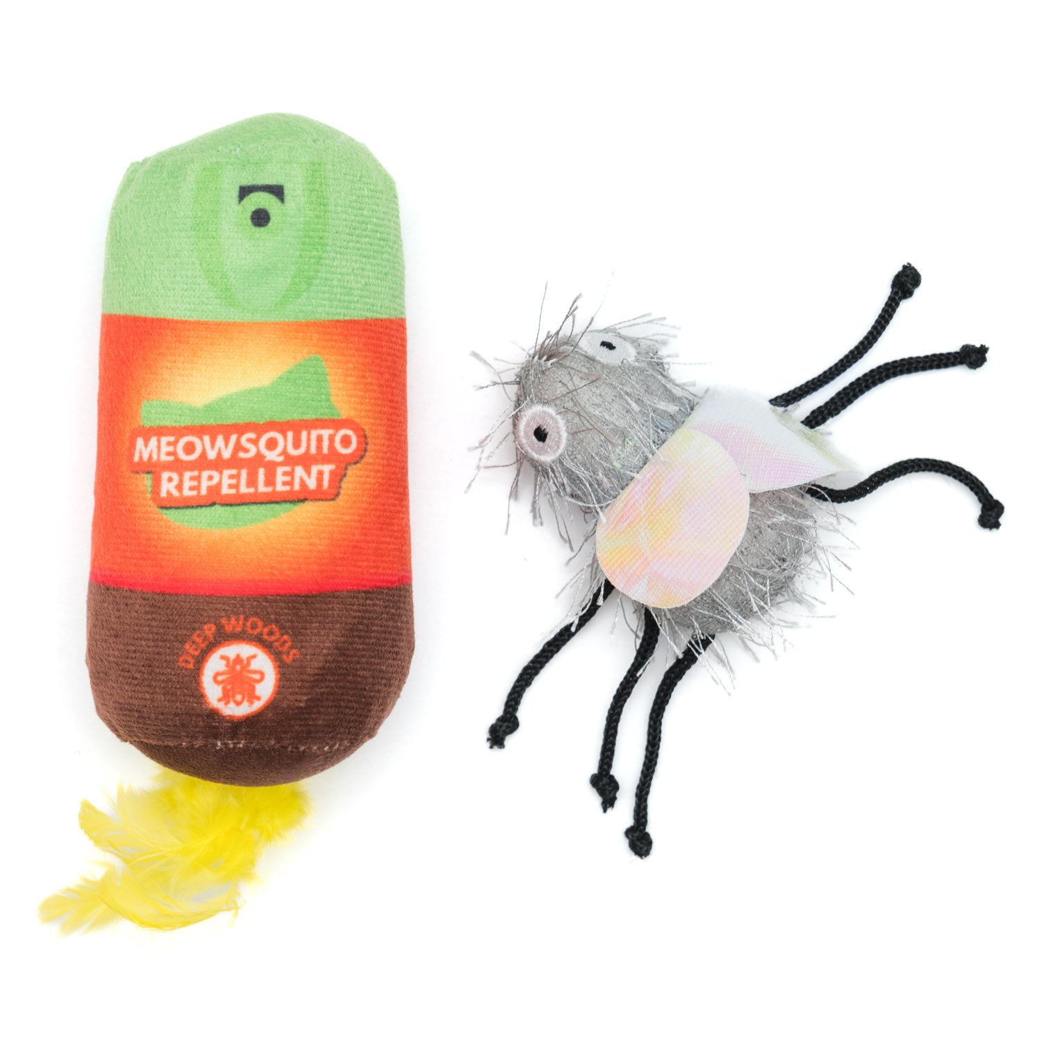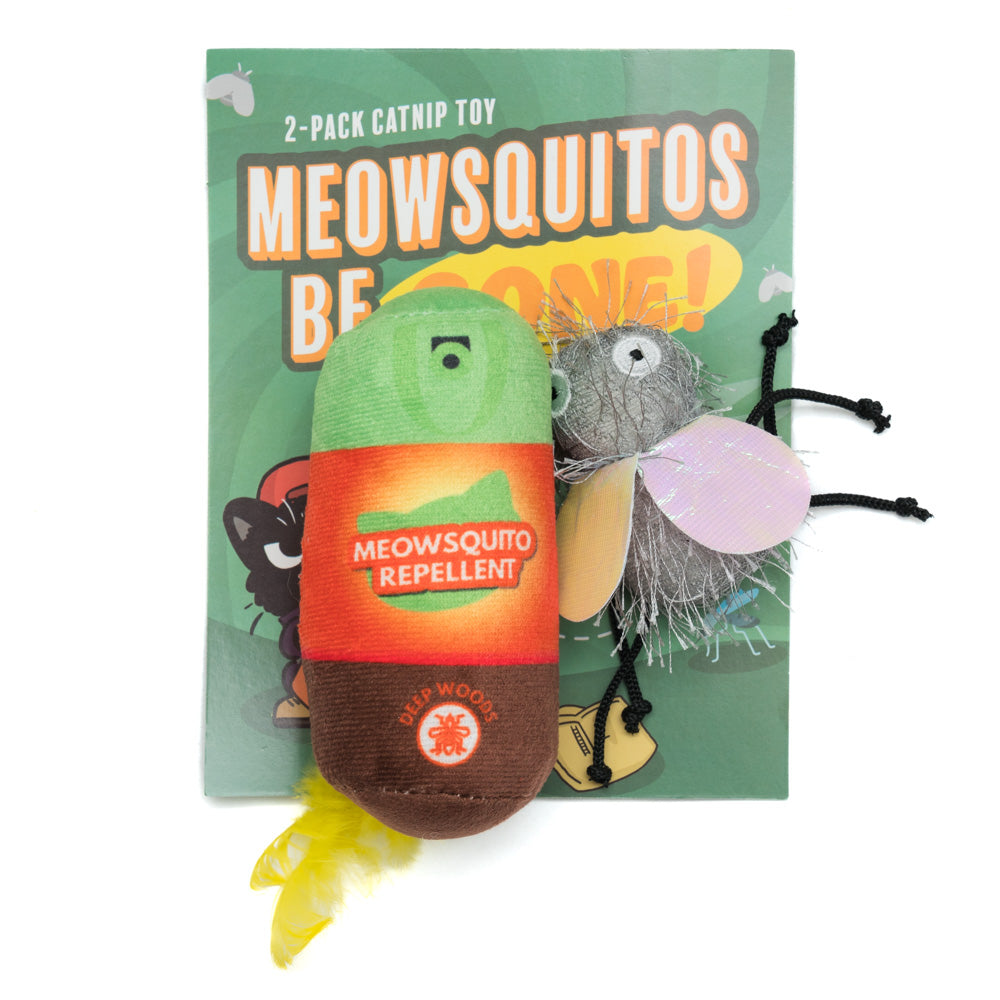 Purrfect for kitties who love to hunt bugs (but can't always catch their prey)! Keep your furry friend entertained with our Meowsquitos Be Gone bug spray mini-kicker. Even comes with a catnip mosquito toy. Say goodbye to pesky critters and hello to endless fun!
