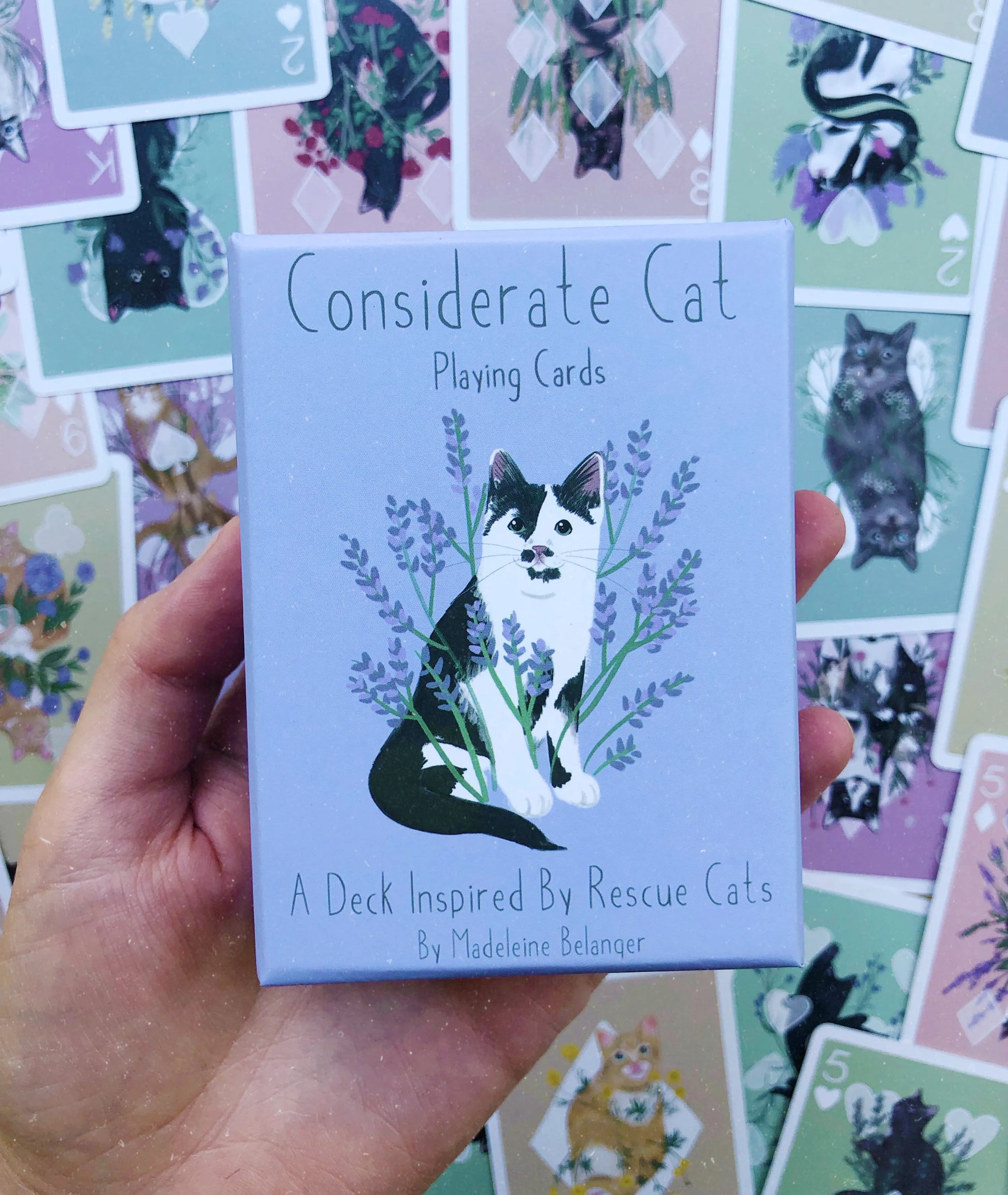 Created lovingly by BC illustrator Madeleine, the mind behind Considerate Cat. Each card features a different rescue cat and a beautiful flower. Purrfect for a night in of solitaire or an intense Pawker match with your pals!
