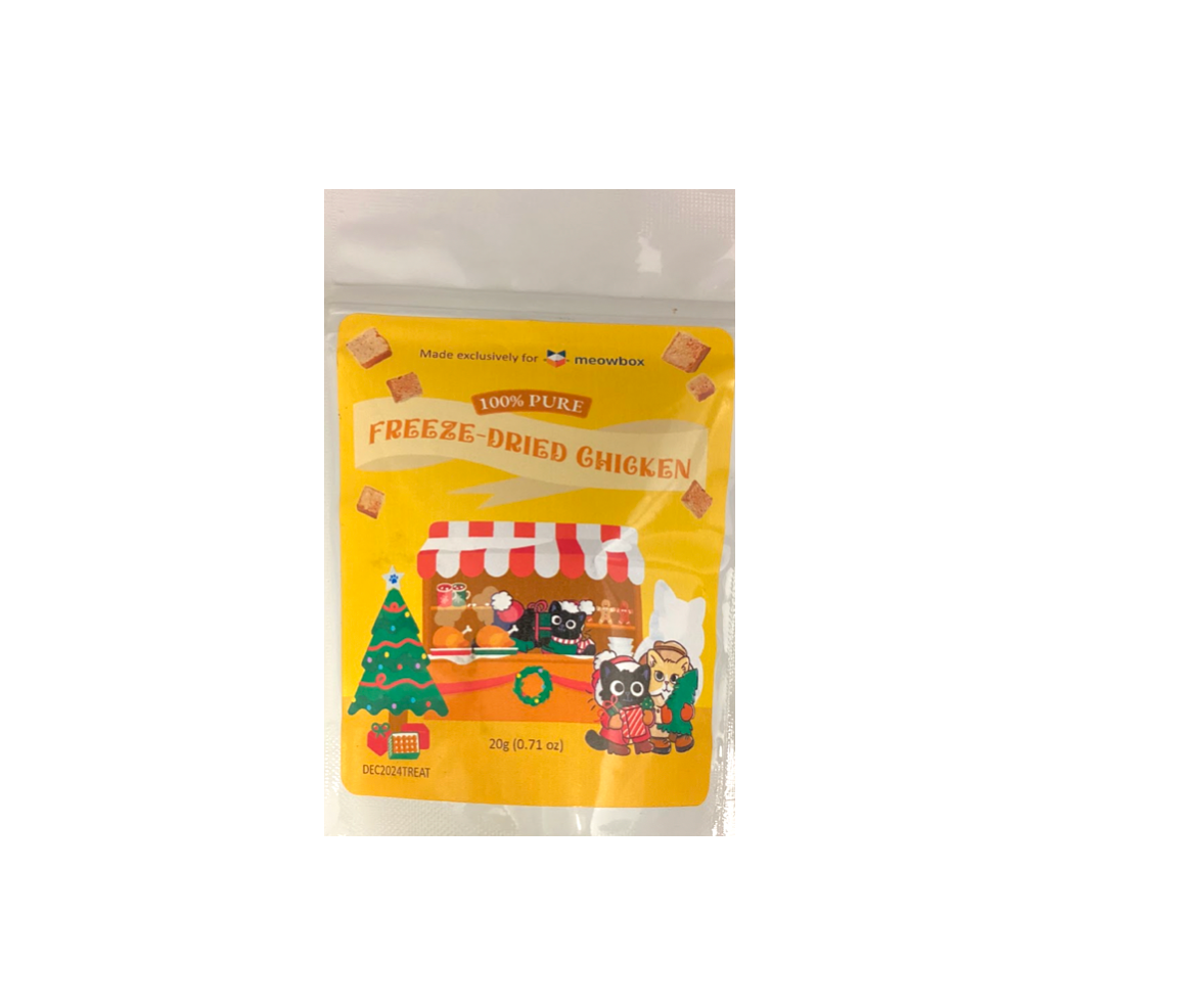 These freeze-dried treats are made from chicken and are a great, extra-special treat for your kitty! No grain, additives or fillers, just Chicken! Bawk Bawk.