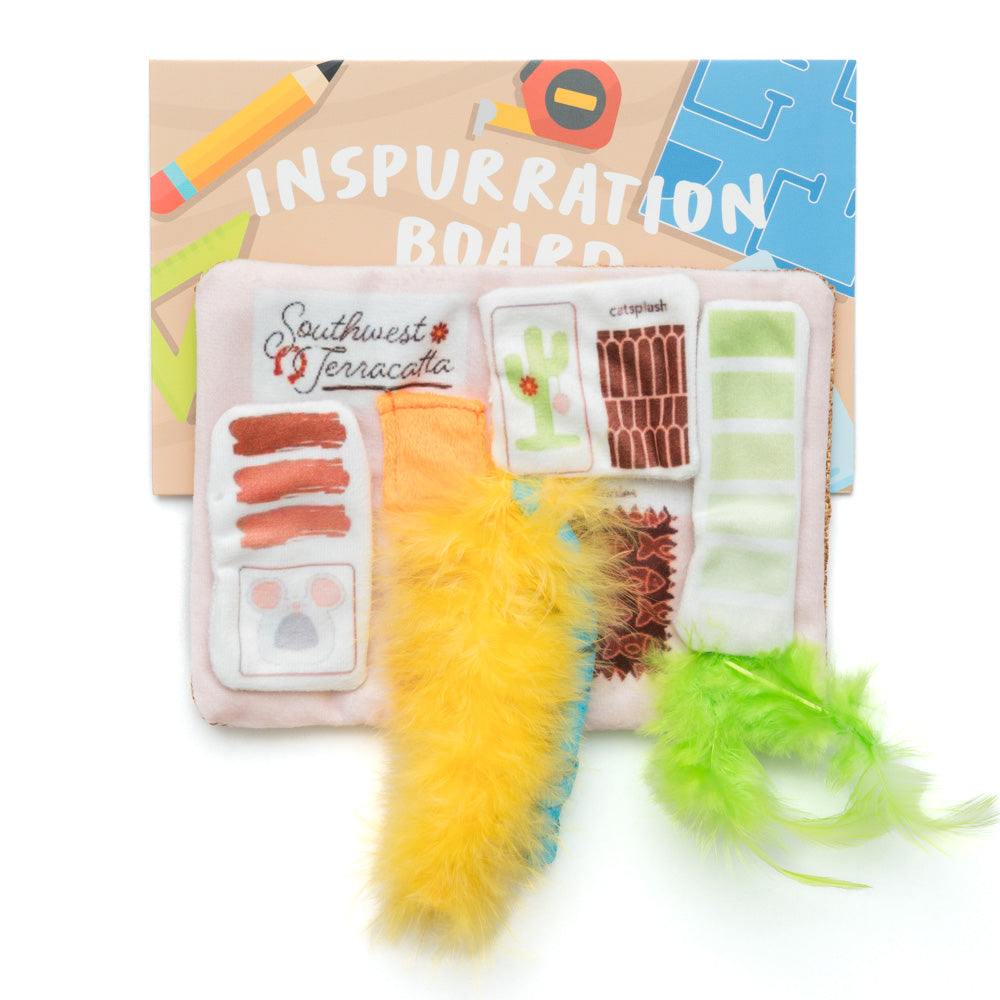 This multi pack comes with a cute, soft mood board toy with 3 remewvable swatch toys attached by low-pile velcro. Swatches have fun feather and ribbon details attached.