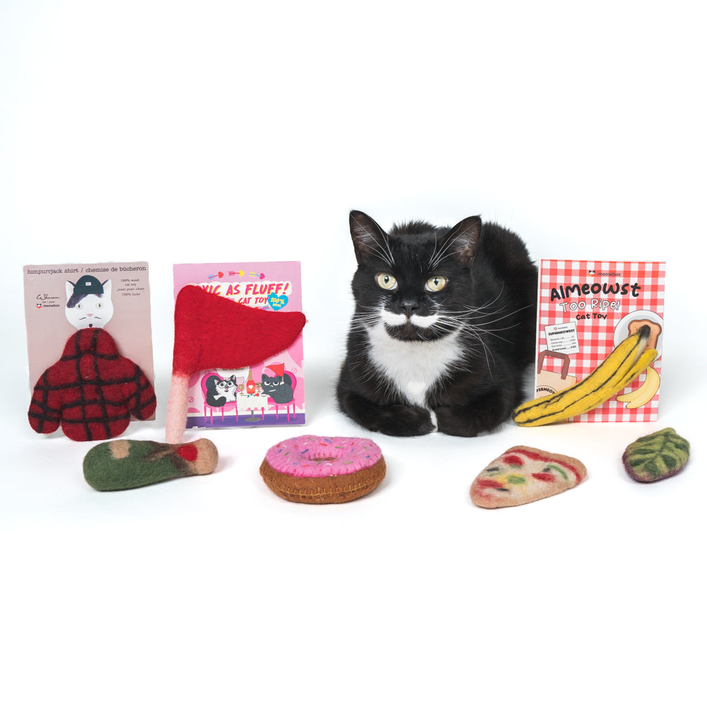 Each bag includes a surpurrise assortment of 7 wool toys from bestselling meowboxes that have a normal retail value of at least $35.00.