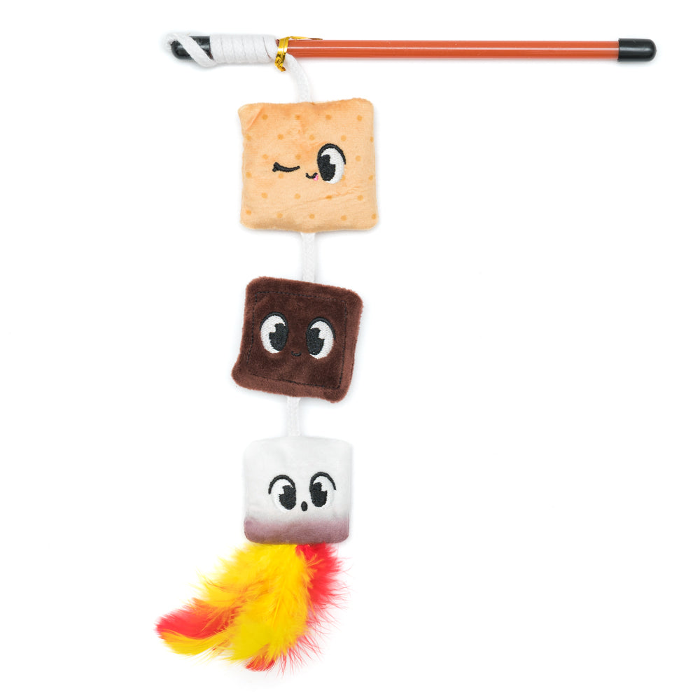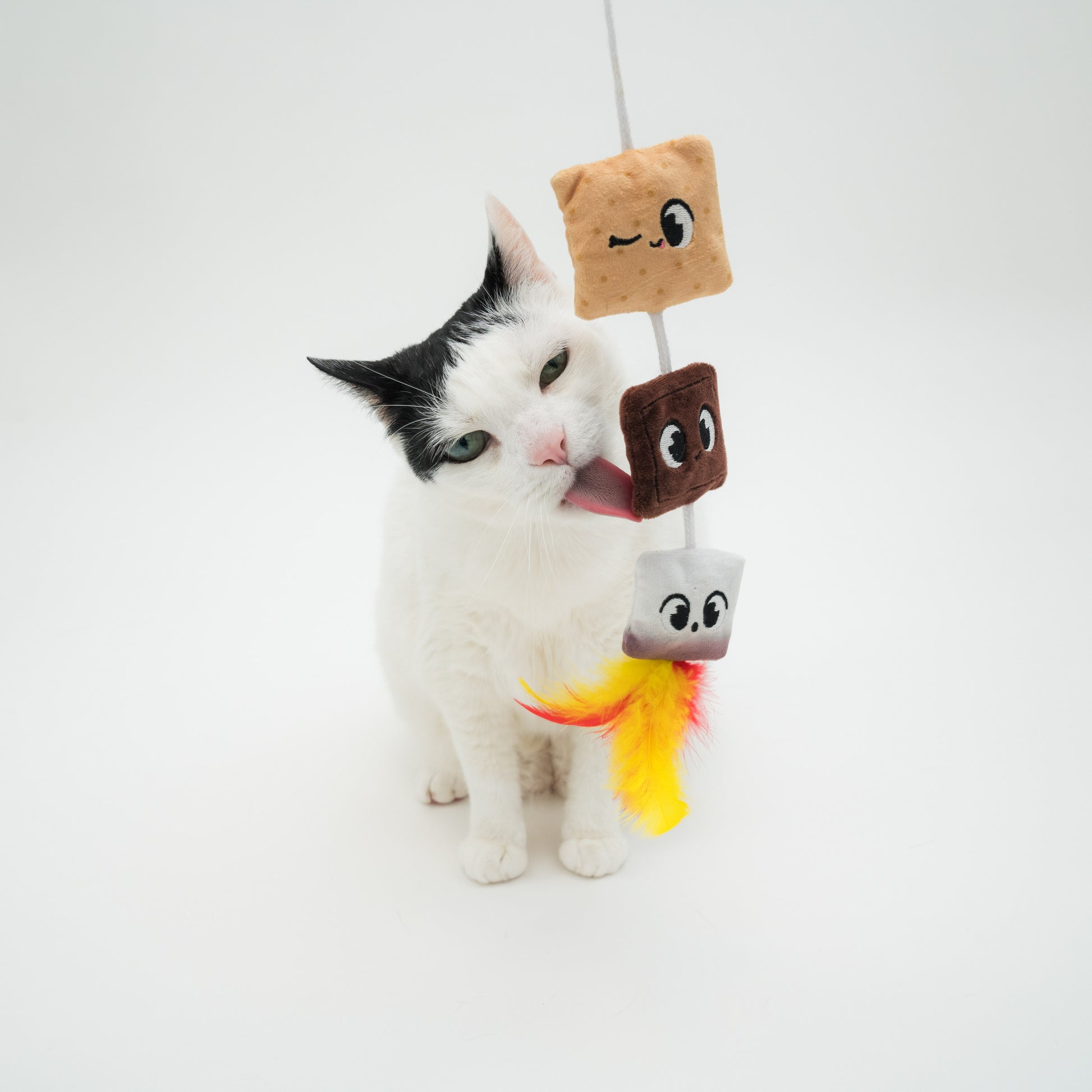 This cat wand is adorned with red and yellow feathers, plush chocolate, graham cracker and marshmallow details, and a hint of catnip for irresistible playtime. With its bouncing and chasing action, your feline friend will be on cloud nine and best of all - no sticky paws!