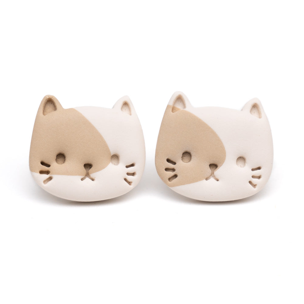 These cat earrings have the cutest little face and ear details, they may cause smiles and compliments from strangers... Handmade in Ontario, Canada by With Love, Whit. Crafted from Polymer clay, stamped/indented face details.